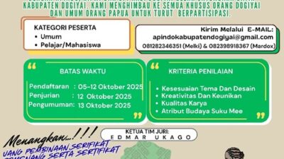 Dogiyai, 6 Oktober 2025 – Dalam rangka memperingati Hari Kebudayaan, Dinas Kebudayaan dan Pariwisata Kabupaten...