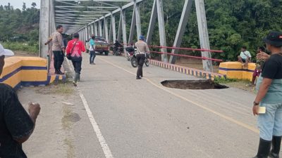 Aspal Jembatan Kali Wanggar Nabire Amblas Akibat Hujan Deras