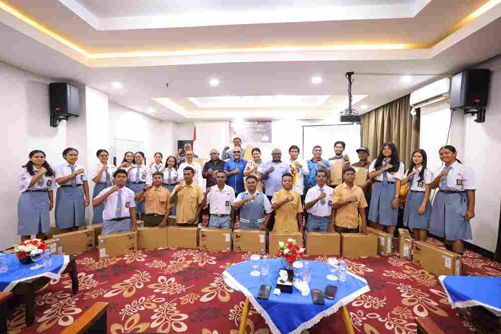 Untuk Kabupaten Mimika, penyerahan bantuan laptop diberikan kepada 25 siswa, yang dilaksanakan di Ballroom Hotel Grand Tembaga, Sabtu (24/01/2026). Kegiatan ini menjadi bukti nyata kehadiran pemerintah dalam memastikan tidak ada pelajar yang tertinggal dalam mengakses pendidikan dan teknologi.