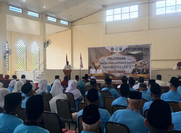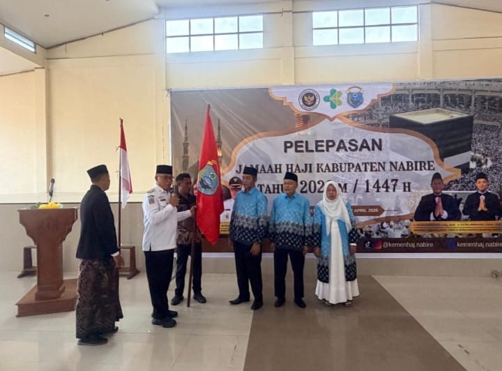 Nabire, 22 April 2026 – Pemerintah Kabupaten Nabire bersama Kementerian Haji dan Umrah secara resmi melepas 80 calon jemaah haji Kabupaten Nabire Tahun 1447 Hijriah/2026 Masehi dalam acara yang digelar di Gedung Islamic Center Nabire, Rabu (22/4/2026).