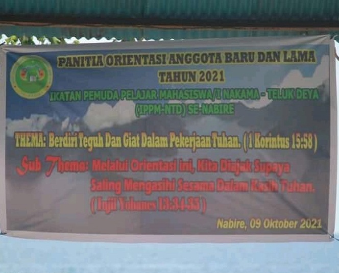 Nabire, Ikatan Pemuda Pelajar Mahasiswa Nakama – Teluk Deya (IPPM-NTD) Kota Studi nabire melaksanakan acara orientasi dan perkenalan bagi anggota baru organisasi ini, bertempat di Pantai budi Nabire, Sabtu (09/10).