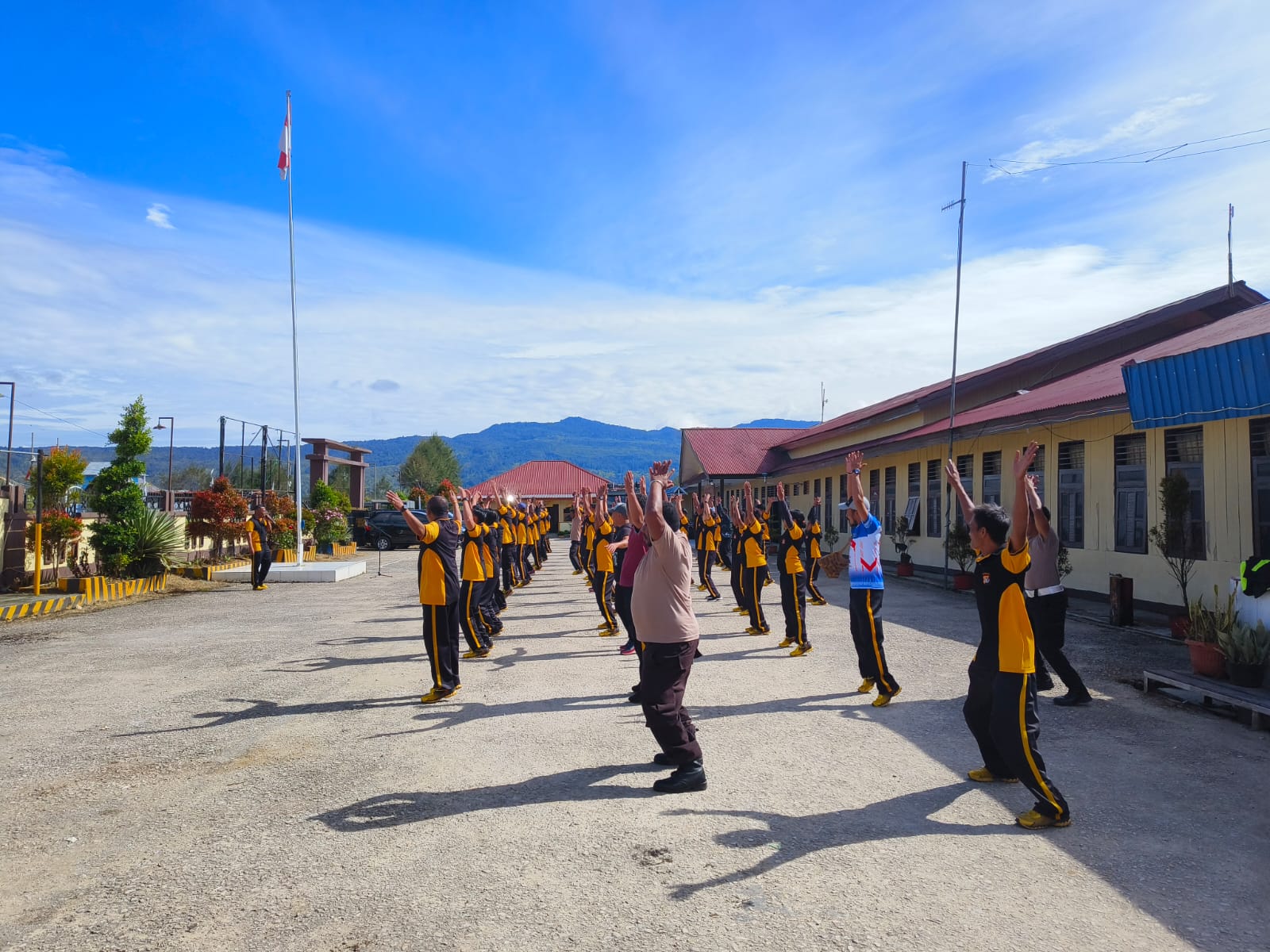 Kegiatan diawali senam pagi bersama dilanjutkan dengan kegiatan kerja bakti di halaman Mako Polres Paniai.
