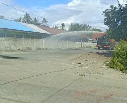 Dalam aksi ini, pihak kepolisian menyiagakan water canon untuk memadamkan ban yang dibakar massa di tengah jalan.