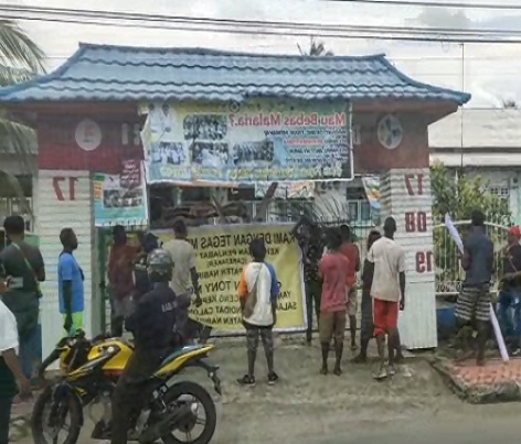 Massa menempelkan spanduk tersebut di depan kantor Dinas PUPR Nabire dan kantor Dinas Kesehatan Jalan Merdeka Nabire.