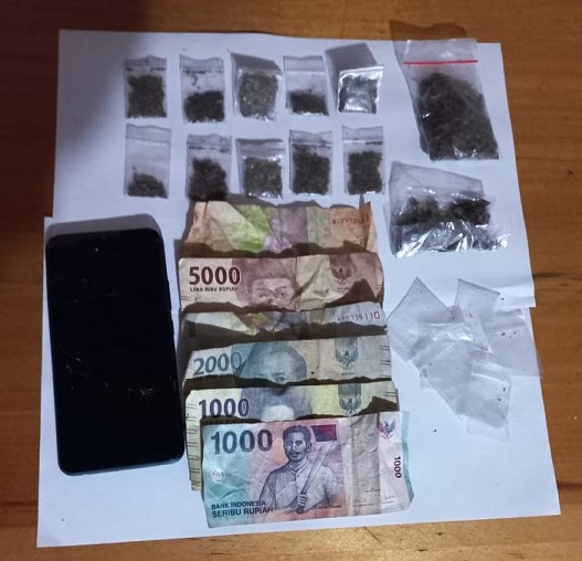 “Kami amankan saat melakukan transaksi di perempatan jalan batalyon, Narkotika jenis ganja siap edar. Dan ditemukan barang bukti berupa, 10 paket/bungkus kecil Narkotika jenis Ganja, 2 paket/bungkus sedang dan 1 buah handphone merk VIVO warna biru,” ucap Kasat.