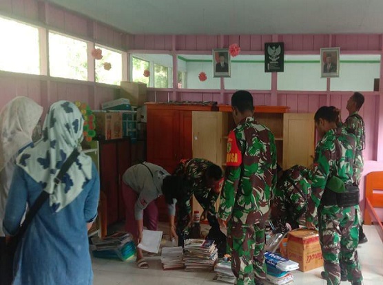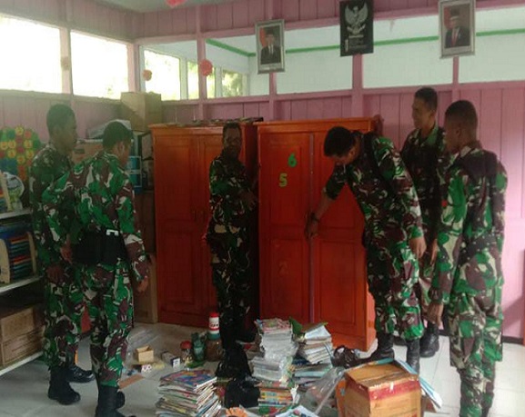 Babinsa Bersama Ibu Persit KCK Lakukan Pembenahan Ruang Kelas TK Yayasan Kartika Siriwini Nabire
