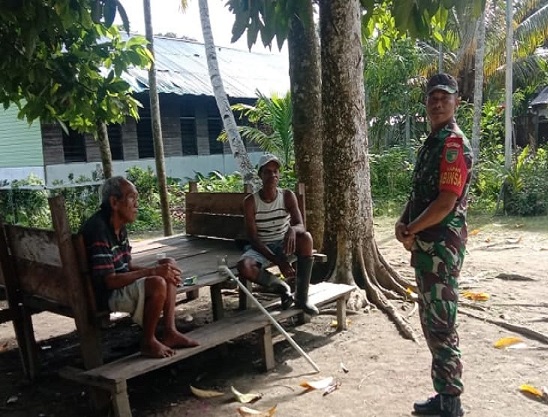Nabire, Anggota Babinsa Koramil 1705-02/Napan, membangun hubungan yang harmonis dengan masyarakat melalui kegiatan Komunikasi Sosial.