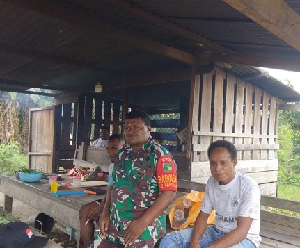 Nabire, Dalam rangka mempererat tali silaturahmi, Babinsa Koramil 1705-02/ Napan, Serma Daniel Rumatray, melaksanakan kegiatan Komunikasi Sosial (Komsos) dengan warga binaan di Kampung Makimi, Distrik Makimi, Nabire, Papua Tengah, Rabu (03/05/2023).