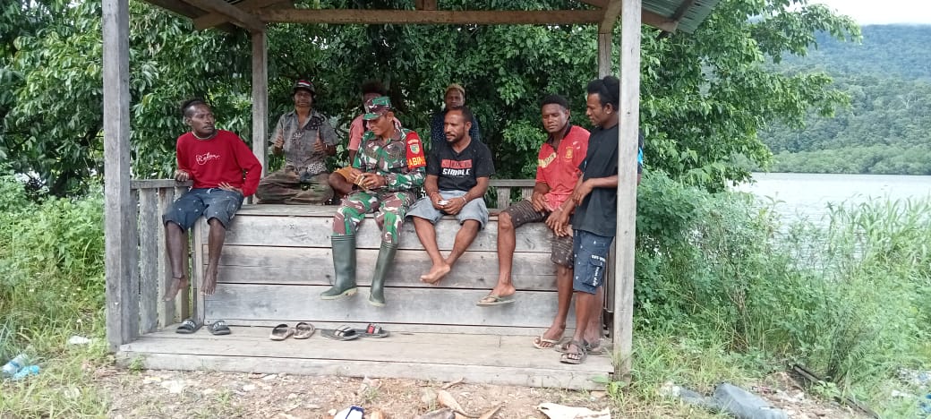 Nabire, Anggota Babinsa Pos Ramil Lembah Jago Koramil 1705-03/Kwatisore, Serka Sigit Suryono, melaksanakan kegaiatan Komunikasi Sosiak (Komsos) dengan masyarakat binaan di Kampung binaan, Lembah Jago, Distrik Yaur, Papua Tengah, Sabtu (10/02/2024).