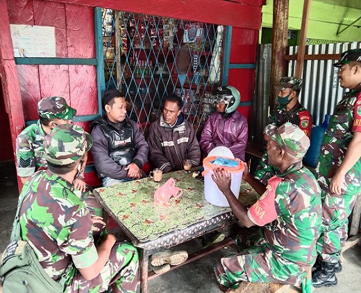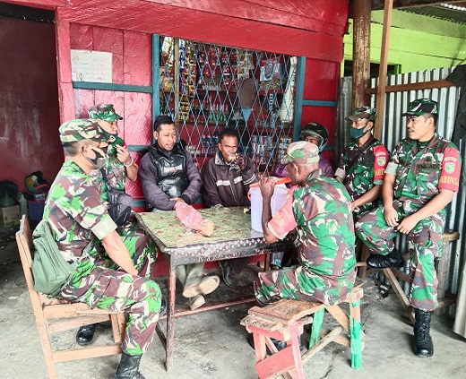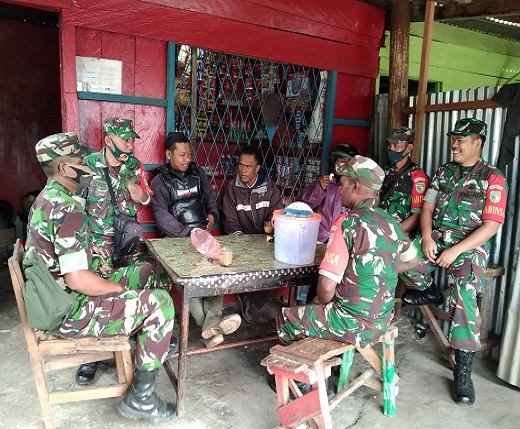 Dogiyai, Melalui metode Komunikasi Sosial (Komsos), Babinsa Koramil 1705-04/Moanemani, mengimbau kepada warga masyarakat agar selalu waspada dalam melaksanakan pekerjaannya.