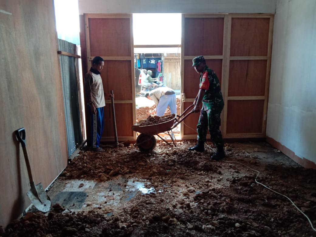 Babinsa Moanemani Bantu Warga Buat Kios di Kampung Ikebo