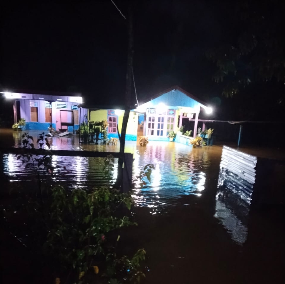 Banjir Rendam Kampung Topo Jaya, Polsek Uwapa Ikut Terdampak, Warga Masih Siaga