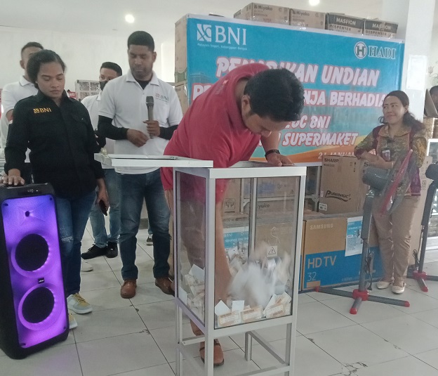 BNI KCP Nabire & BNI KK Pasar SP Gelar Penarikan Undian Program Belanja Berhadiah di Loka Mart dan Hadi Supermarket