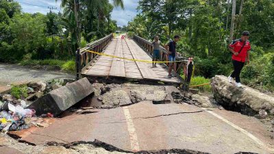 Pemerintah daerah diharapkan segera melakukan pemeriksaan lebih lanjut untuk memastikan kondisi jembatan agar tetap aman digunakan masyarakat.