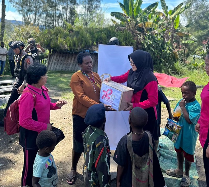 Bantuan yang dibagikan meliputi pakaian anak dan dewasa, sembako, makanan ringan, handuk, dan selimut. Sasaran penerima bantuan adalah warga di kampung Wandoga, Bilogai, dan Yokatapa. Kegiatan Bhayangkari Peduli ini bertujuan untuk meringankan beban masyarakat setempat dan menunjukkan kepedulian Bhayangkari terhadap kesejahteraan warga.