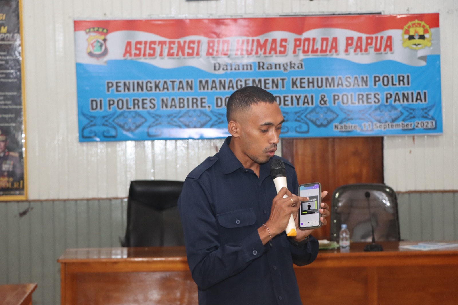 “Terima kasih kami sampaikan kepada team dari Kasubdit Penmas Polda Papua yang sudah datang memberikan Asistensi di Polres Nabire untuk meningkatkan management kehumasan Polri. semoga dengan kehadirannya dapat menambah wawasan kepada kami tentang kehumasan dalam institusi Polri.Kegiatan asistensi humas diharapkan dapat meningkatkan manajemen Humas serta lebih profesional lagi dalam pelaksanaan tugas. Diharapkan bukan untuk personil humas saja namun seluruh anggota Polri agar mengetahui terkait bidang Humas, khususnya dalam bermedsos secara pribadi maupun memberikan informasi di media online.