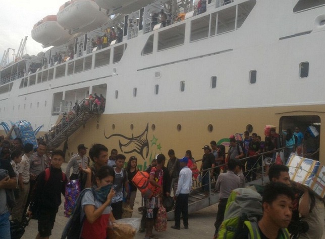 Jumlah penumpang yang tiba maupun berangkat menggunakan Kapal KM Labobar cukup banyak. Turut mengawasi turun naik penumpang, anggota Kepolisian dari Polsubsektor Kawasan Pelabuhan Laut Nabire.