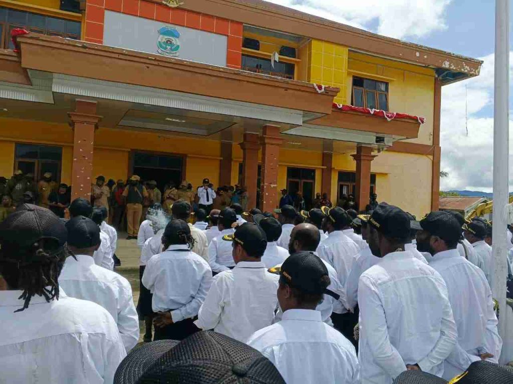 “Selamat kepada bapak/ibu yang sudah jadi pegawai. Jangan malas-malasan, harus rajin masuk kantor. Ini kesempatan yang berharga dan patut dibanggakan untuk bersama-sama membangun Dogiyai,” ujarnya dengan semangat semboyan “Dogiyai Dou Enaa.”