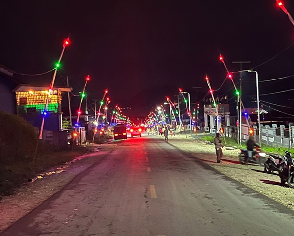 “Semoga dengan hiasan lampu jalan ini menjadi tempat bertamasya bagi orang-orang dari Kabupaten Deiyai,” ujar Bupati Mote.