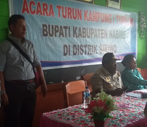 Nabire – Bupati Nabire, Isaias Douw S.Sos M.AP menggelar kegiatan turun kampung ke Distrik Siriwo, sabtu (22/12). Dalam kunjungan tersebut, Bupati bersama rombongan melakukan tatap muka dengan warga masyarakat.