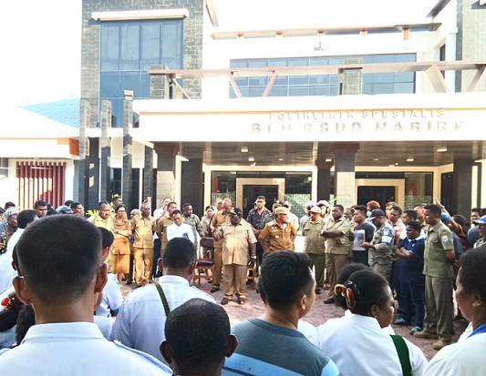 Aksi demo tersebut langsung disampaikan tenaga honorer kepada Wakil Bupati Nabire, Amirullah Hasyim, selasa pagi, di RSUD Nabire.