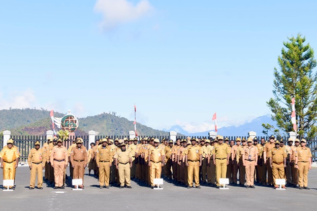 Puncak Jaya, 29 September 2025 – Bupati Puncak Jaya, Dr. Yuni Wonda, S.Sos., S.IP., MM memimpin langsung apel pagi di halaman Kantor Bupati Puncak Jaya, Senin (29/09/2025).