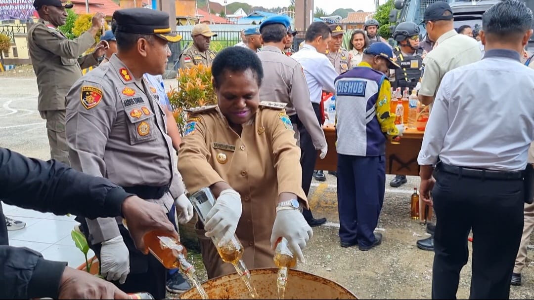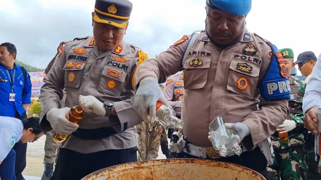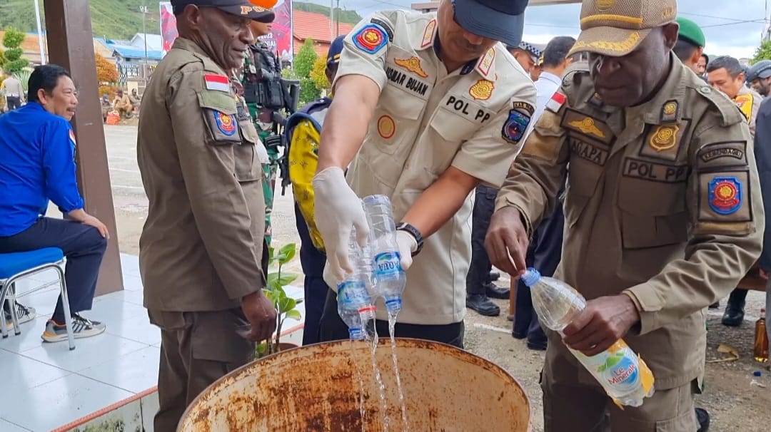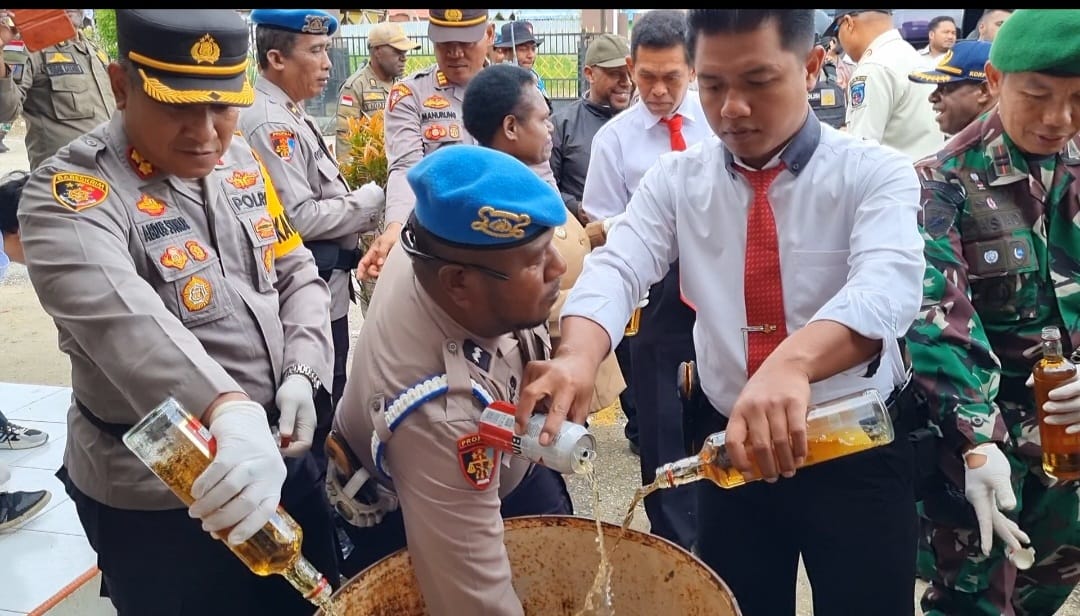 Cipta Kondisi Jelang Natal dan Tahun Baru, Polres Paniai Musnahkan Ratusan Miras