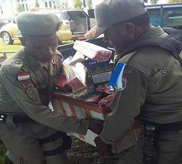Ciptakan Situasi Yang Aman & Kondusif Jelang Tahun Baru 2018, Satpol PP Nabire Gelar Operasi Penertiban Pedagang Petasan