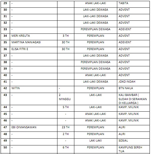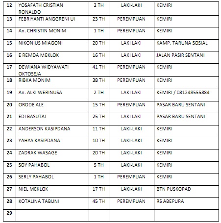 Berikut daftar nama-nama korban meninggal dunia dan korban hilang yang diterima Nabire.Net dari Posko Induk Banjir Bandang Sentani Papua, senin malam (18/03) :