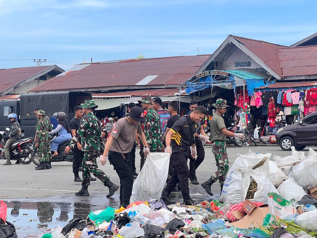 Dengan bersinergi dengan Polri serta Satpol PP, anggota TNI mengangkat sampah-sampah yang beserakan di jalan maupun di selokan. Harapannya agar sampah tidak menyumbat saluran irigasi yang bisa sewaktu-waktu menyebabkan banjir di musim penghujan.