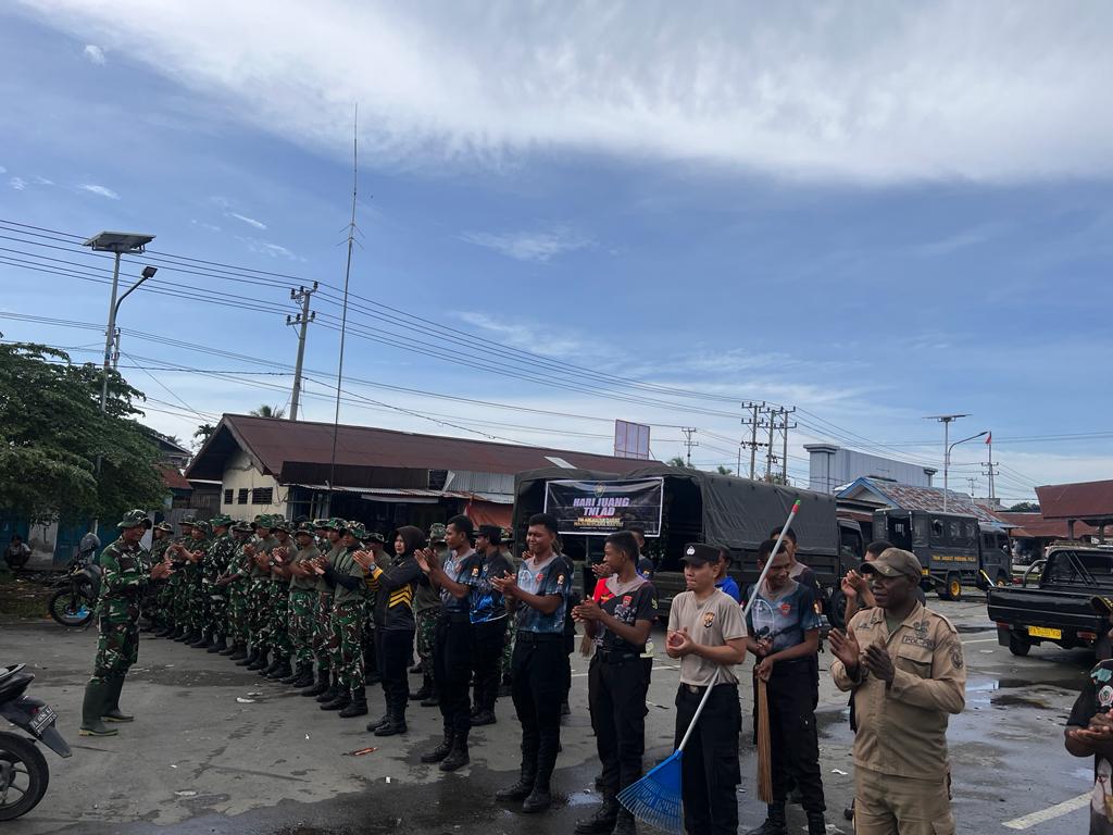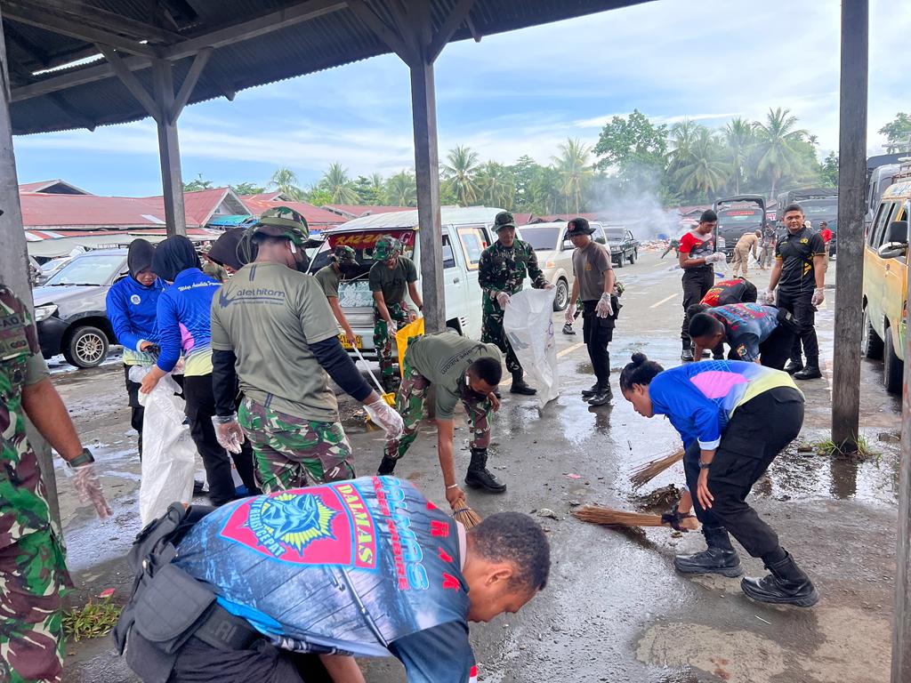 Dalam Rangka Hari Juang TNI-AD ke-78, Kodim 1705/Nabire bersama Polisi dan Satpol PP Gelar Bersih Pasar