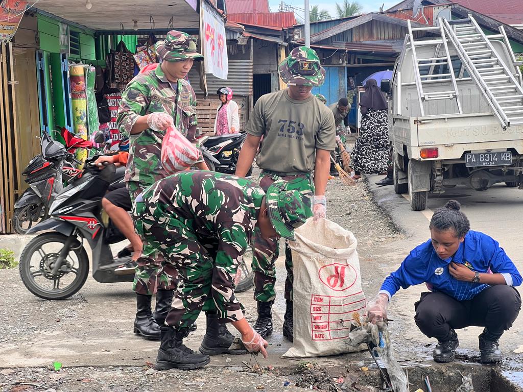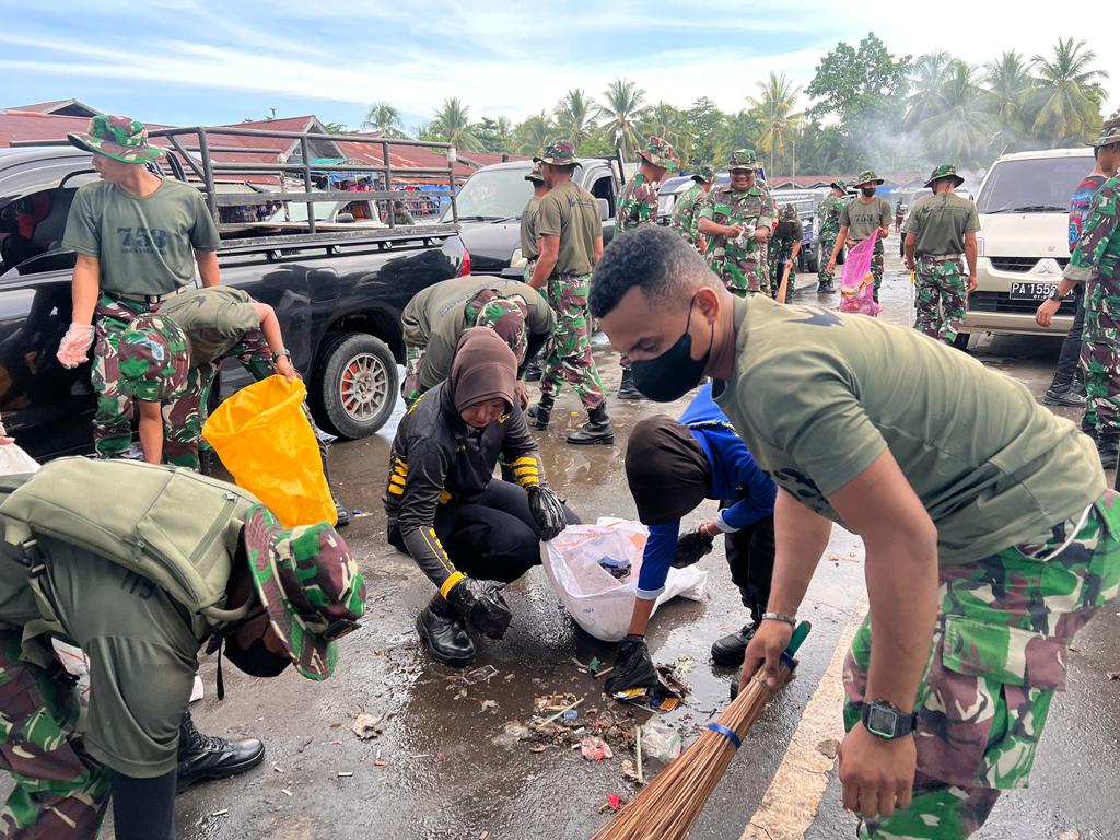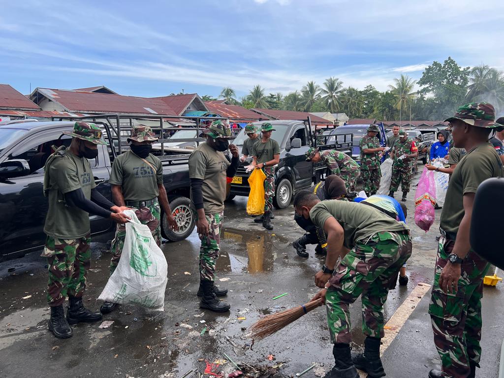 Sesuai dengan tema, kegiatan ini sebagai bentuk kepedulian TNI terhadap kebersihan lingkungan, khusunya Pasar Tradisional Kalibobo.