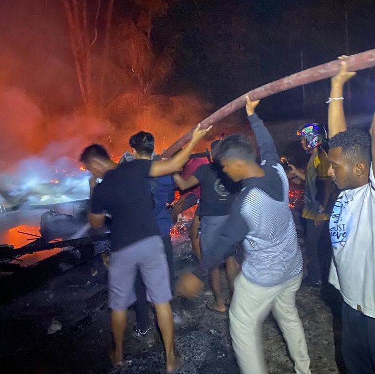 Nabire, Dalam sehari, kebakaran terjadi di dua lokasi berbeda di kabupaten Nabire, Papua Tengah. Pada Rabu pagi, kebakaran menimpa rumah pemilik penampungan besi tua di Jalan Suci, sementara pada Rabu malam (15/11/2023), si jago merah melahap sebuah rumah di putaran satu, Kelurahan Kalibobo, Distrik Nabire Kota, sekira pukul 23.00 WIT.