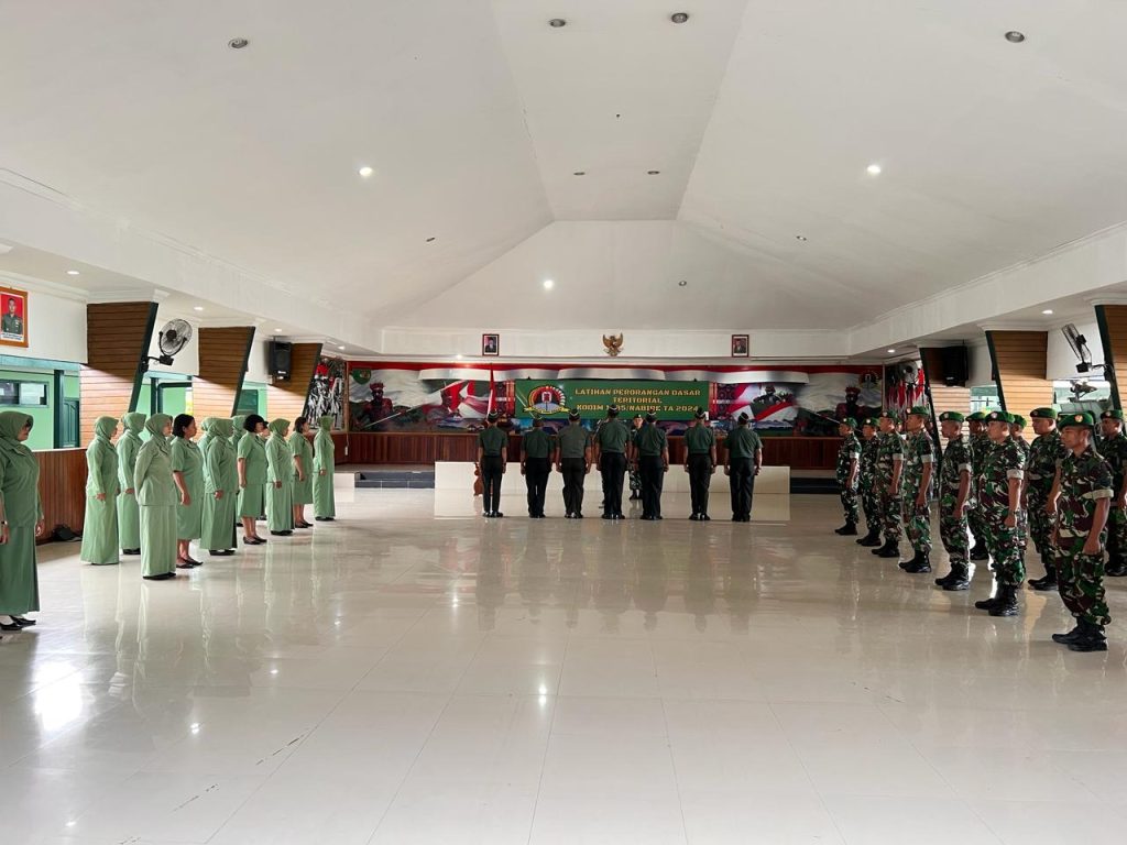Nabire, Bertempat di Aula Kodim1705/Nabire, Jl. Ahmad Yani, Nabire, Papua Tengah, Dandim 1705/Nabire, Letkol Doni Firmansah,M.Han, memimpin acara Korps Raport Kenaikan pangkat personel Kodim 1705/Nabire, periode 1 April 2024.