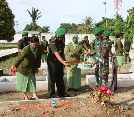 Dandim 1705/Nabire bersama Rombongan dan Persit KCK XX Nabire melaksanakan penghormatan dilanjutkan mengheningkan cipta.