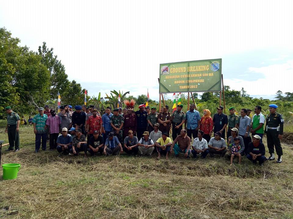 Danrem 173/PVB, Brigjen TNI I Nyoman Cantiasa SE, dalam kunjungan kerjaya di Nabire, menghadiri acara Peletakan Batu Pertama (Ground Breaking) kegiatan cetak sawah seluas 500 Hektar untuk tahun 2017, di kabupaten Nabire.