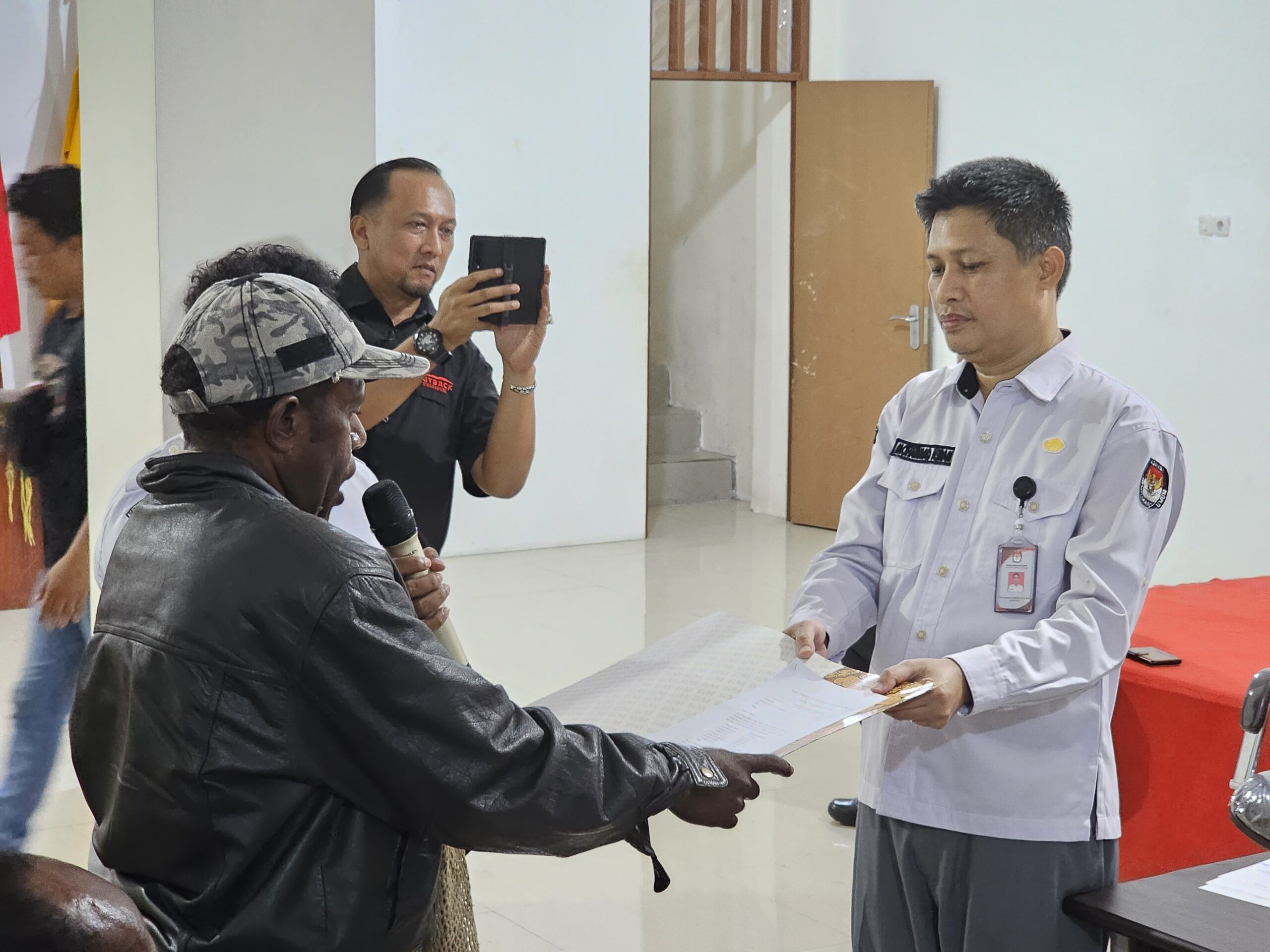 Dukungan ini disampaikan melalui Surat Pernyataan Sikap yang ditujukan kepada Ketua KPU Papua Tengah yang diterima oleh Sekretaris KPU Papua Tengah, Mohammad Asram, S.STP., M.Si, didampingi Kapolres Nabire, Senin (02/09) sore, di Kantor KPU Papua Tengah.