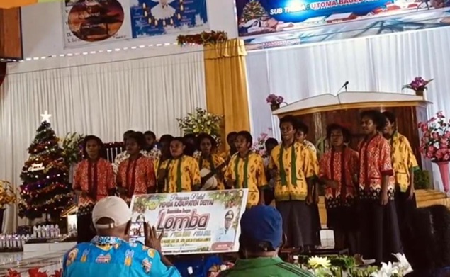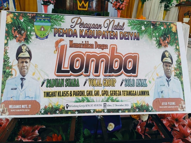 Deiyai, 27 Desember 2025 – Dalam rangka memeriahkan perayaan Natal Gabungan Pemerintah Daerah (Pemda) Kabupaten Deiyai, Lomba Paduan Suara, Vokal Grup, dan Solo Anak tingkat Klasis, Paroki, serta berbagai denominasi gereja sukses digelar di Gedung Gereja Kingmi Jemaat Nafiri Atouda, Kabupaten Deiyai.