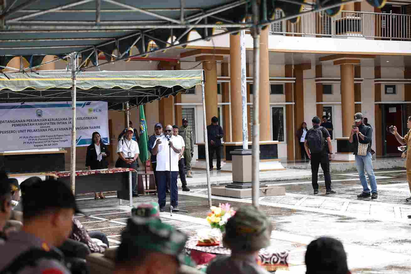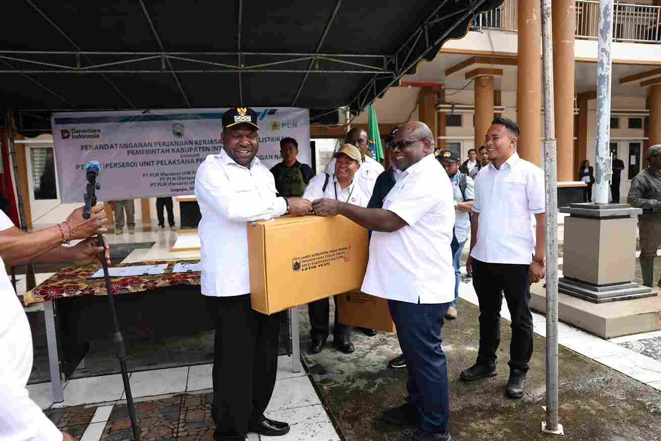 Intan Jaya, 9 Juli 2025 – Pemerintah Kabupaten Intan Jaya resmi menandatangani perjanjian kerja sama kelistrikan dengan PT PLN (Persero) Unit Pelaksana Pelayanan Pelanggan (UP3) Nabire, Rabu pagi (9/7/2025). Acara penandatanganan berlangsung di halaman Kantor Bupati Intan Jaya dan disaksikan langsung oleh Gubernur Provinsi Papua Tengah.
