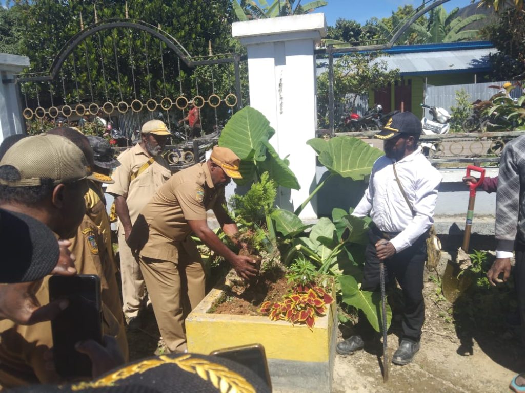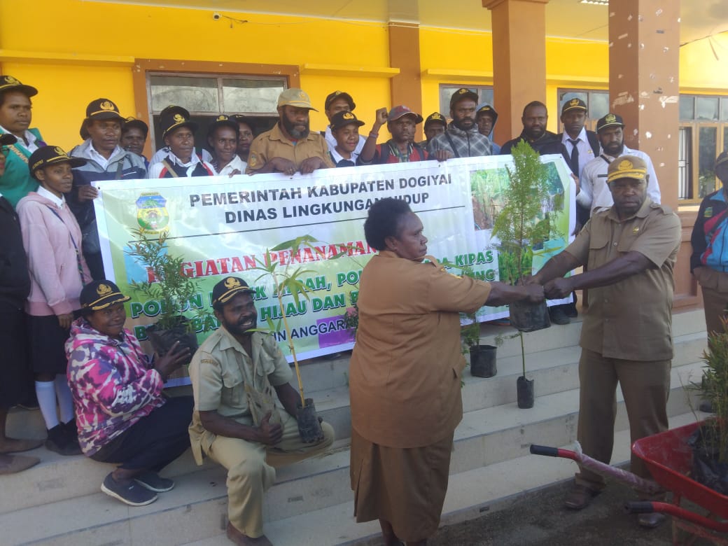 Sebanyak 20 bibit pohon ditanam secara kolektif di halaman Kantor Bupati Dogiyai sebagai langkah awal dari program penghijauan ini.