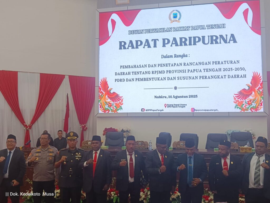 Nabire, 14 Agustus 2025 – Dewan Perwakilan Rakyat Provinsi Papua Tengah menggelar rapat paripurna di ruang rapat utama Kantor DPR Papua Tengah, Nabire, Kamis (14/8/2025), untuk membahas dan menetapkan tiga Rancangan Peraturan Daerah Provinsi (Ranperdasi).