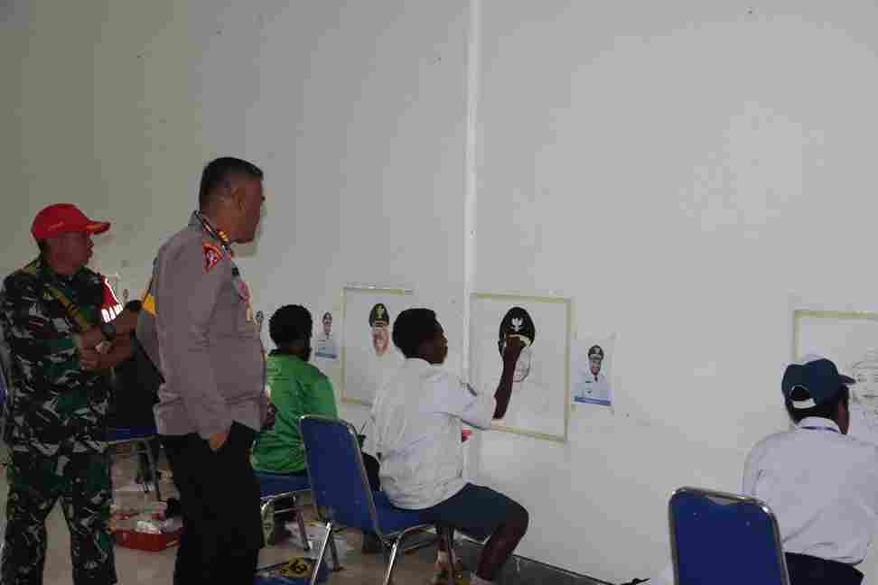 Festival Kebudayaan dan Ekonomi Kreatif Paniai Meriah, Polisi Ikut Ajar Anak-Anak Menggambar