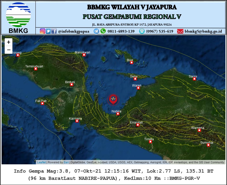 Gempa Magnitudo 3.8 Guncang Nabire Kamis Siang