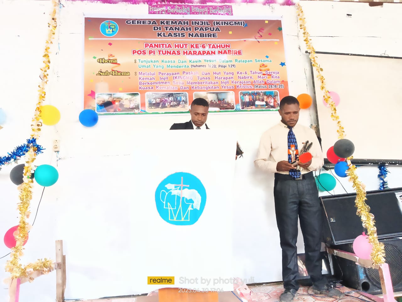 Ibadah HUT ke-6 dipimpin oleh Mahasiswa STTWP Kampus 2 Nabire, Daud Degei dan penerjemah Deki Gobai mengusung tema “Tunjukanlah kuasa dan Kasih Yesus Kristus dalam Ratapan Sesama Umat yang menderita”, Yohanes 16:20, Filipi 1:29 sub tema “Melalui Perayaan paskah dan HUT yang ke-6 Tahun Kingmi Tunas Harapan Nabire mari kita berkomitmen setia memberitakan Injil kerajaan Allah dalam kuasa kematian dan kebangkitan Yesus Kristus” (Lukas 9:23).