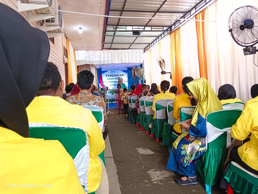 Peresmian SALUT Nabire dihadiri jajaran pimpinan UT Jayapura, Pemerintah Kabupaten Nabire, tokoh masyarakat, serta mahasiswa baru Universitas Terbuka.