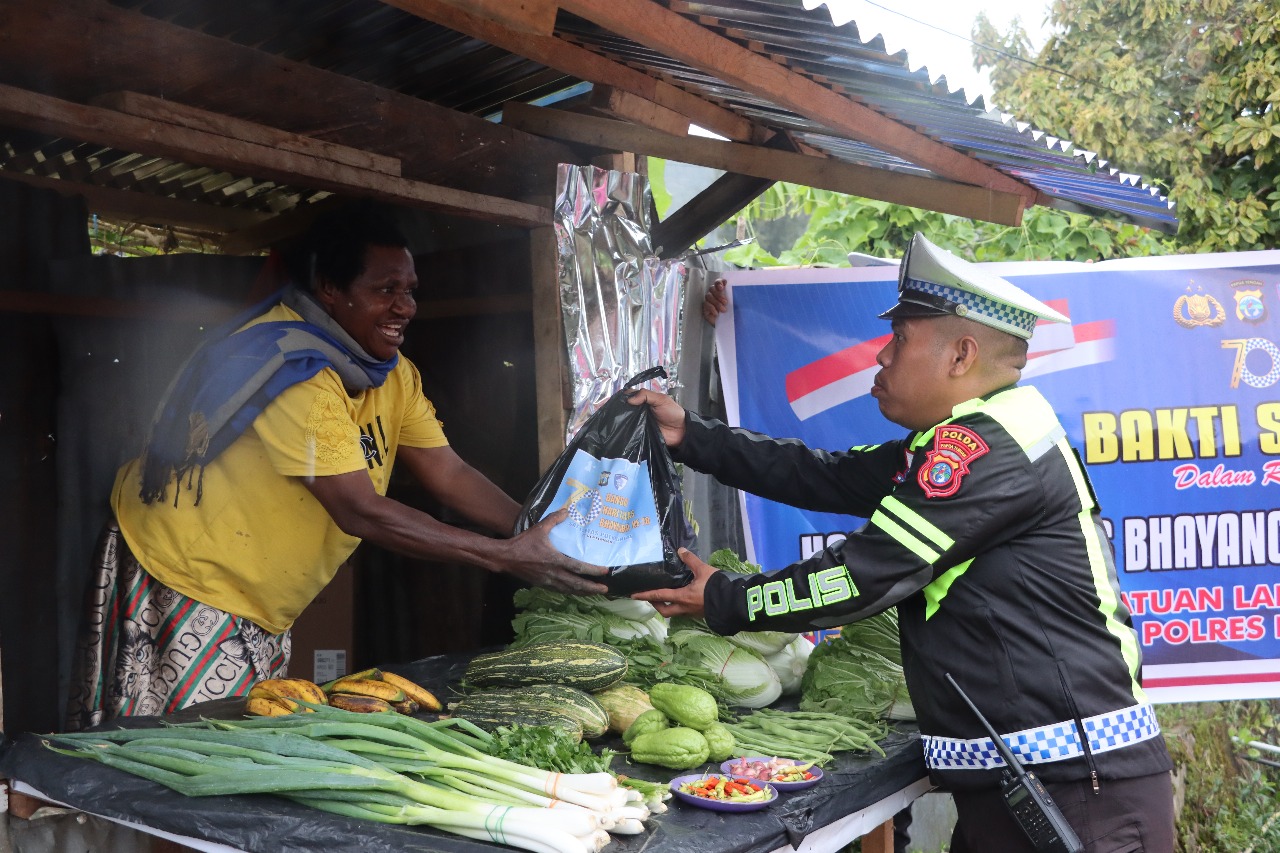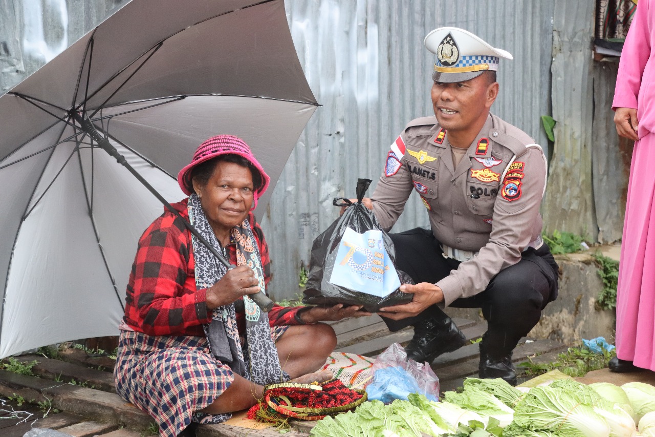 HUT Lalu Lintas ke-70, Satlantas Polres Paniai Gelar Bansos untuk Warga Terdampak Krisis Sembako dan BBM
