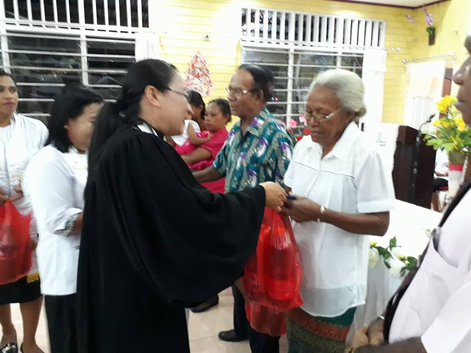 Setelah Ibadah malam kudus ini dilanjutkan dengan penyerahan 5 (lima) bingkisan Diakonia Jemat kepada keluarga Janda dan Duda. Keluarga yang menerimanya antara lain Janda Sampari Koibur, Janda Nimbrot Mnsen, Bapak J. M. Wayar, Nenek Nanthi dan Bapak Agus Hobera. Mewakili janda duda yang disampaikan oleh Bapak J. M. Wayar, beliau menyampaikan terima kasih setinggi-tingginya kepada pihak Gereja dan Warga jemaat yang sudah memberikan derma di kotak diakonia.