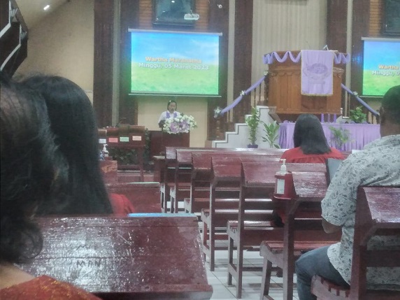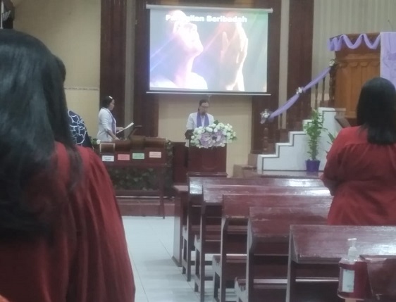 Ibadah diawali pembacaan Warta Jemaat dan Panggilan Beribadah yang dibacakan oleh Majelis Jemaat, dilanjutkan persembahan pujian.