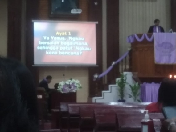 Ibadah Minggu Malam dan juga merupakan Ibadah Minggu Kesengsaraan ketiga ini, mengusung tema : “Penderitaan Yesus adalah Bukti Kasih Allah Bagi Manusia”