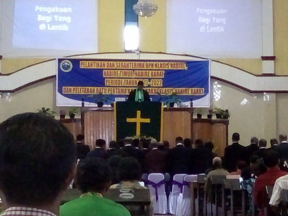 Ibadah dilanjutkan dengan pelantikan & Serah Terima Badan Pekerja Klasis GKI Nabire Timur, Klasis GKI Nabire Timur, dan Bakal Klasis Nabire Barat yang dipimpin Wakil Sekretaris Sinode GKI di Tanah Papua, Pdt. Syahnur Abas S.Th M.Pd.